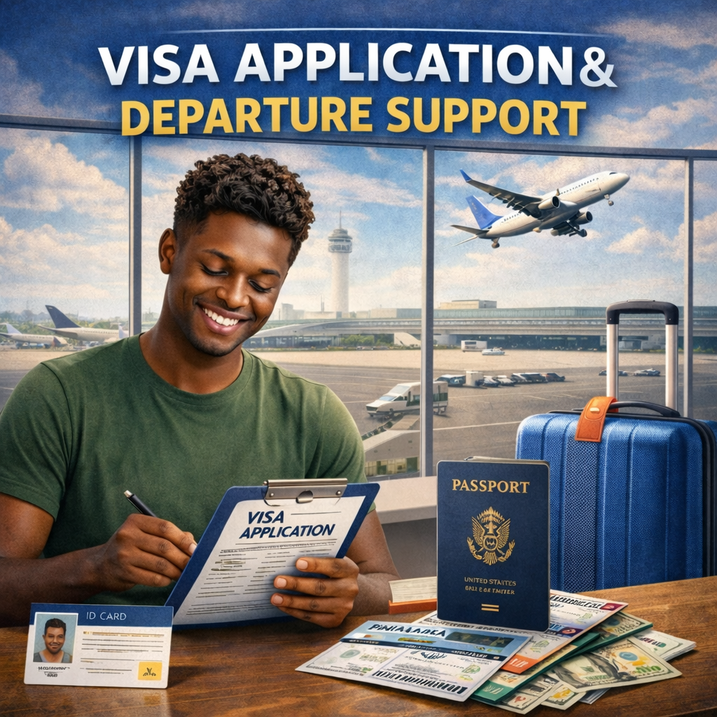 Our support includes eligibility assessment, financial document preparation, online application assistance, visa interview preparation, and pre-departure guidance.